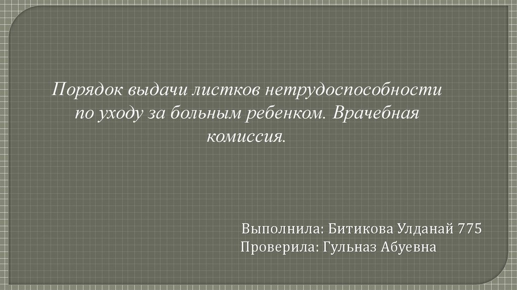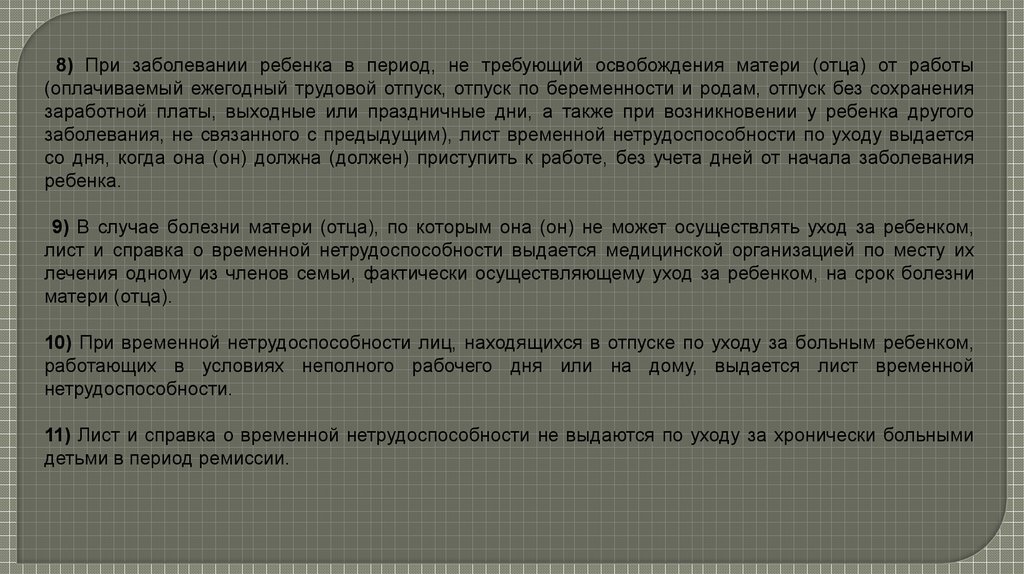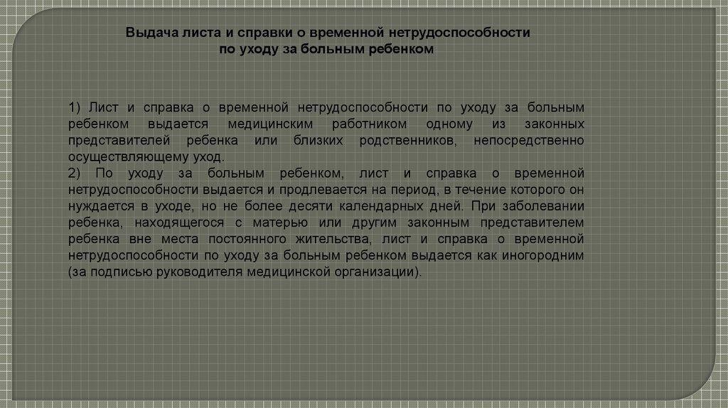 Порядок выдачи листков нетрудоспособностипо уходу за больным ребенком. Врачебная
