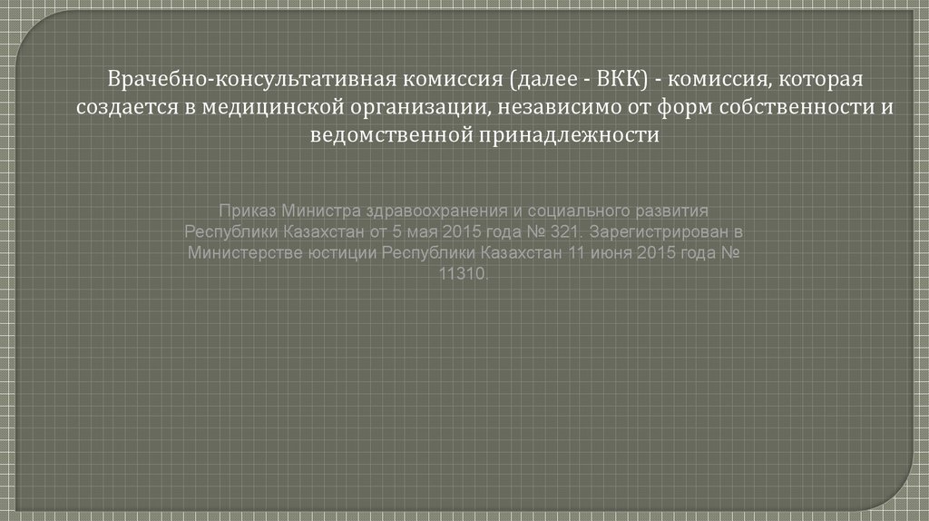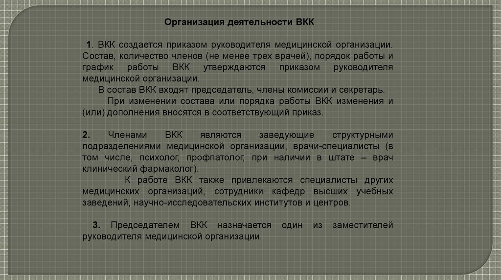 Организация деятельности ВКК1. ВКК создается приказом руководителя медицинской организации.