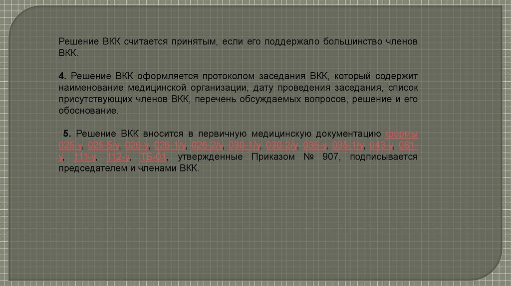 5. Решение ВКК вносится в первичную медицинскую документацию формы