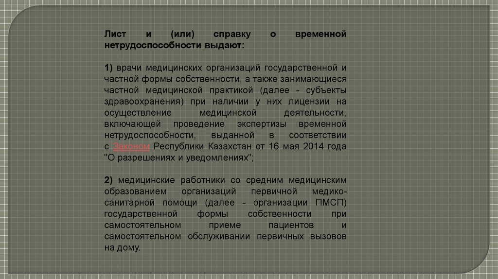 3) разрешение на выдачу листа и справки о временной нетрудоспособности лицам