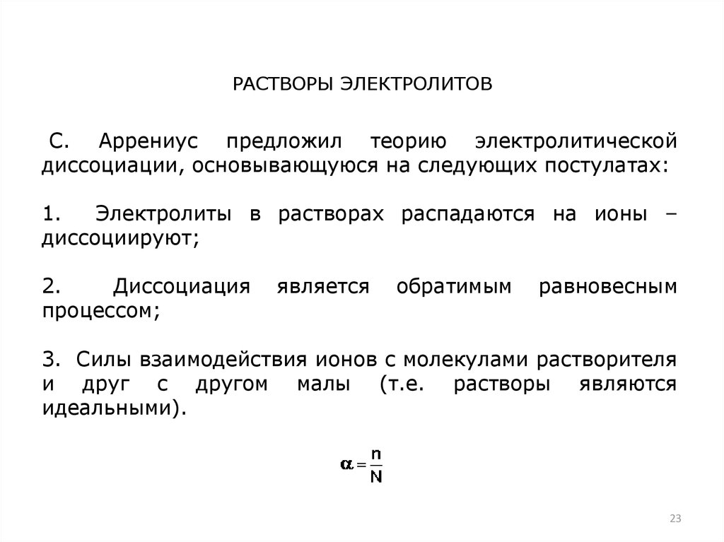 РАСТВОРЫ ЭЛЕКТРОЛИТОВС. Аррениус предложил теорию электролитической