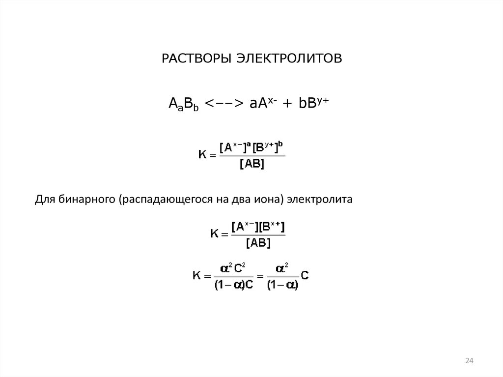 РАСТВОРЫ ЭЛЕКТРОЛИТОВАaВb <––> aАx- + bВy+