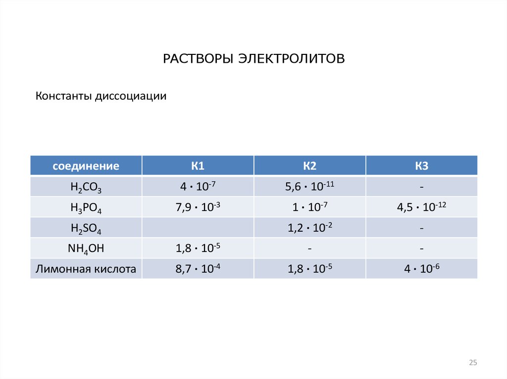 РАСТВОРЫ ЭЛЕКТРОЛИТОВКонстанты диссоциации