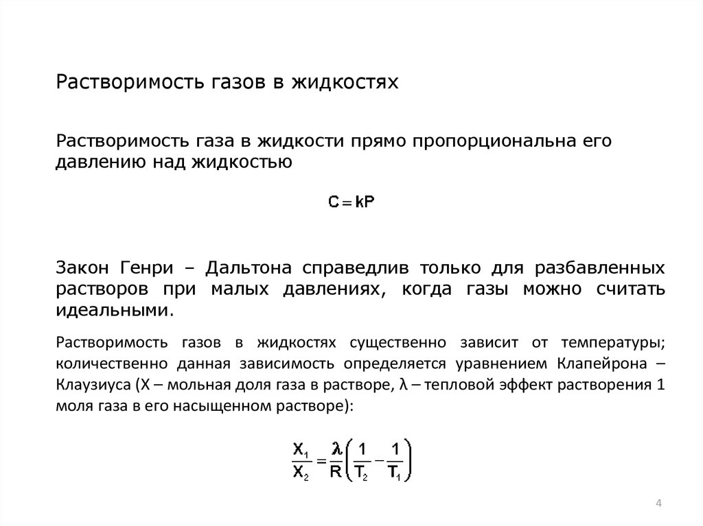 Клаузиуса (X – мольная доля газа в растворе, λ – тепловой эффект растворения 1