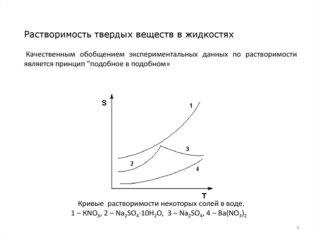 Растворимость твердых веществ в жидкостяхКачественным обобщением экспериментальных данных по растворимости