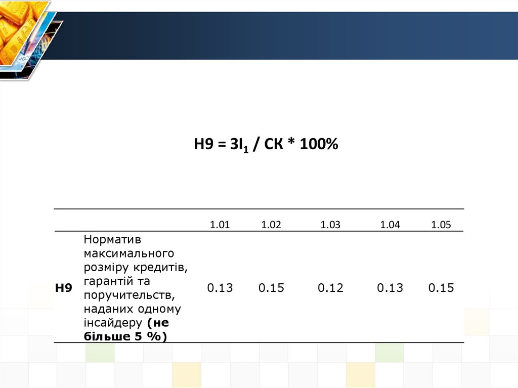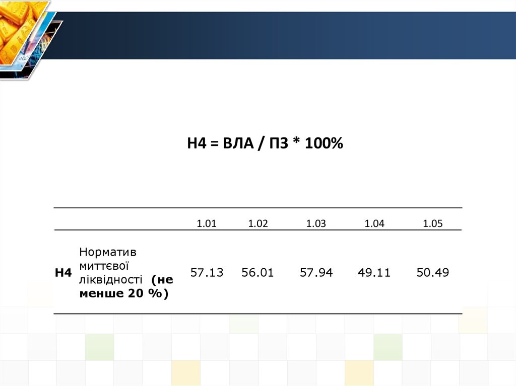 Н5 = активи з кінцевим строком погашення до 31 дня /зобов'язання з кінцевим строком погашення до 31 дня* 100%