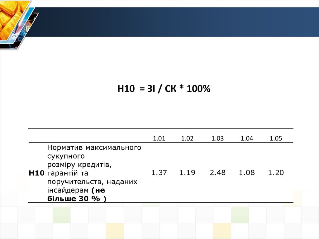Н10 = ЗІ / СК * 100%Норматив максимального