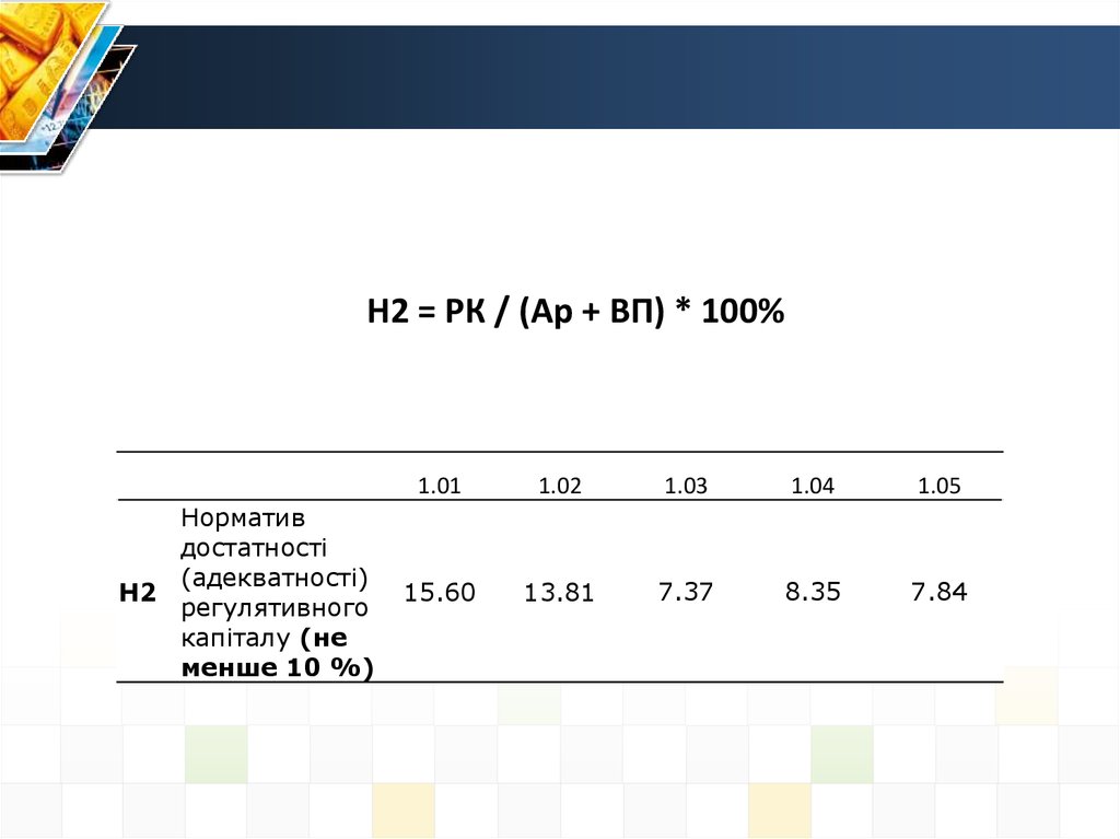 Н2 = РК / (Ар + ВП) * 100%Норматив