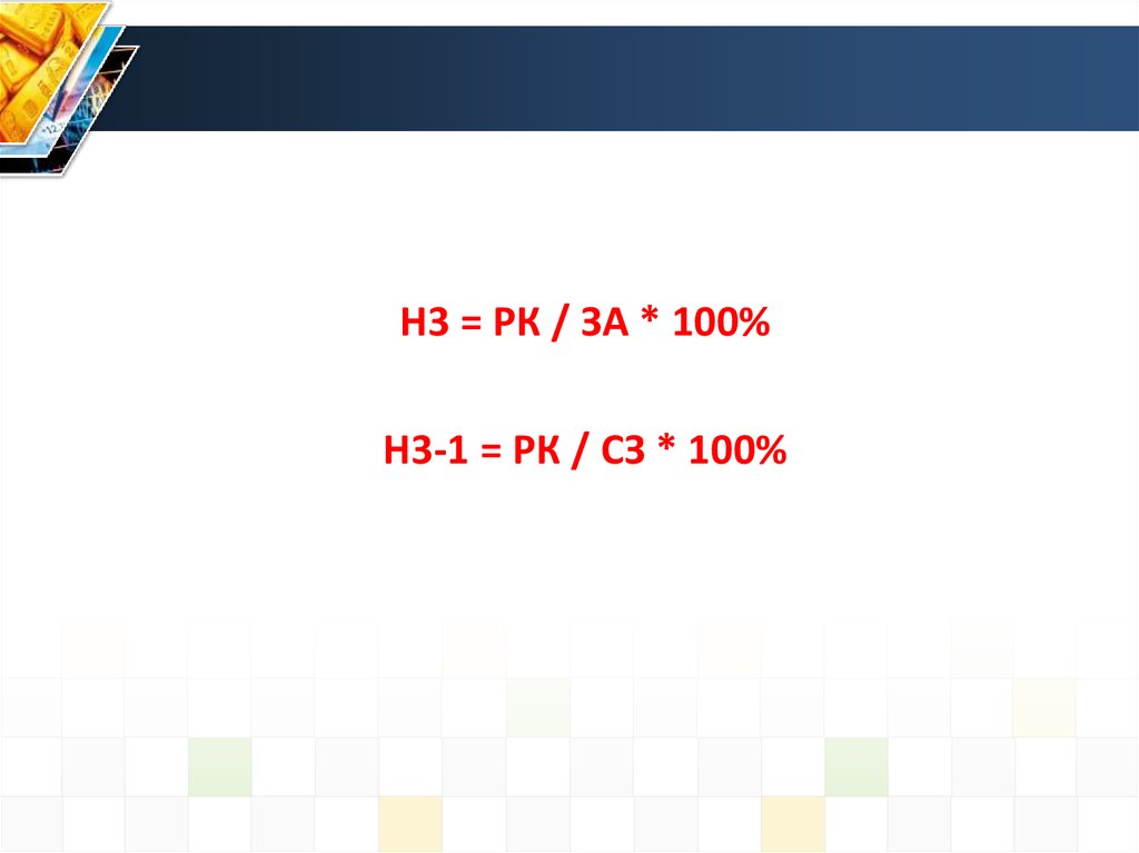 Н3 = РК / ЗА * 100%Н3-1 = РК / СЗ * 100%