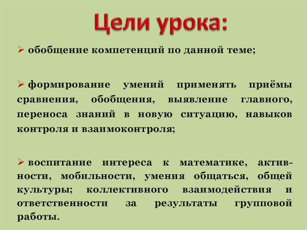 обобщение компетенций по данной теме;формирование умений применять приёмы