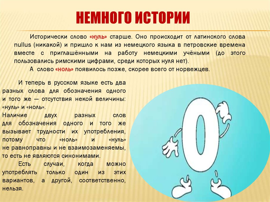 КОГДА УПОТРЕБЛЯЕТСЯ «НУЛЬ»,КОГДА «НОЛЬ»