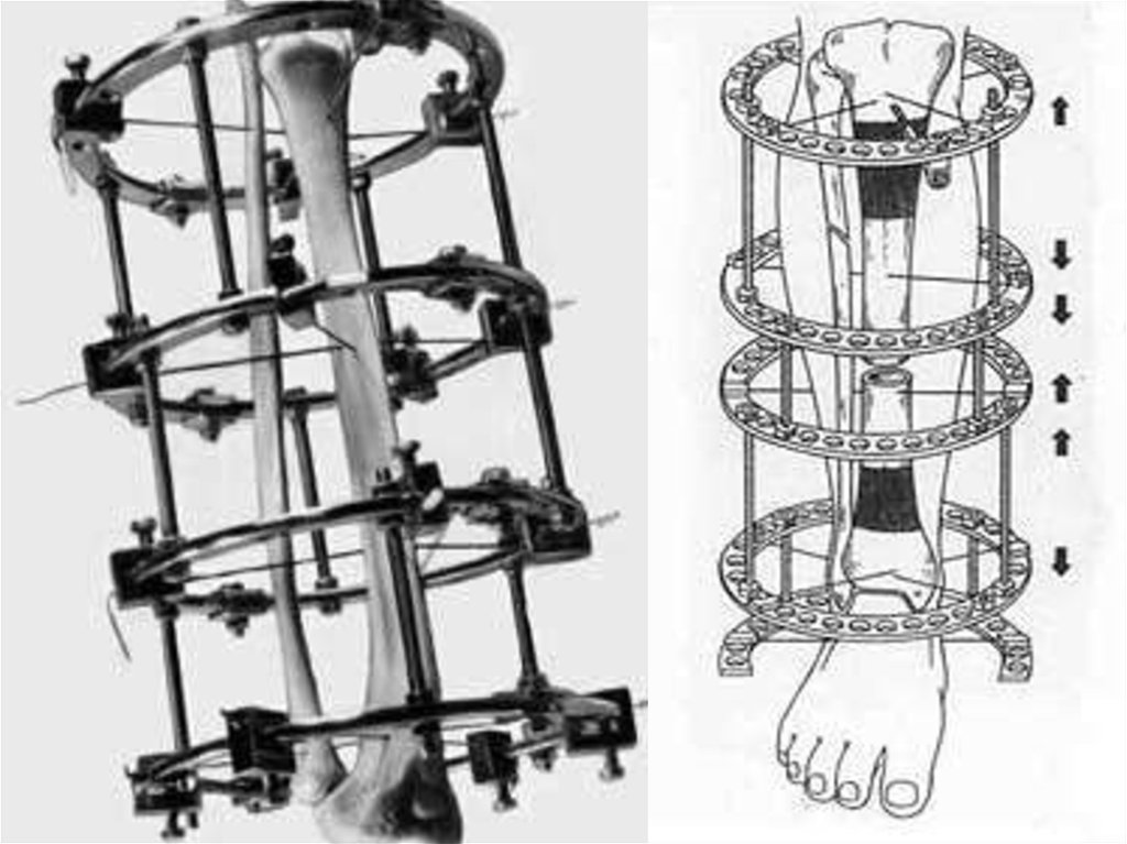 Илизарова на модели правой голени.