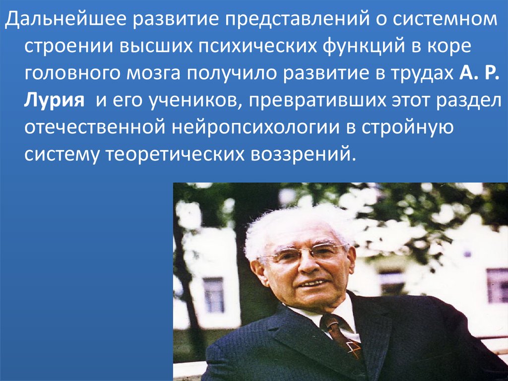 Дальнейшее развитие представлений о системномстроении высших психических функций в коре