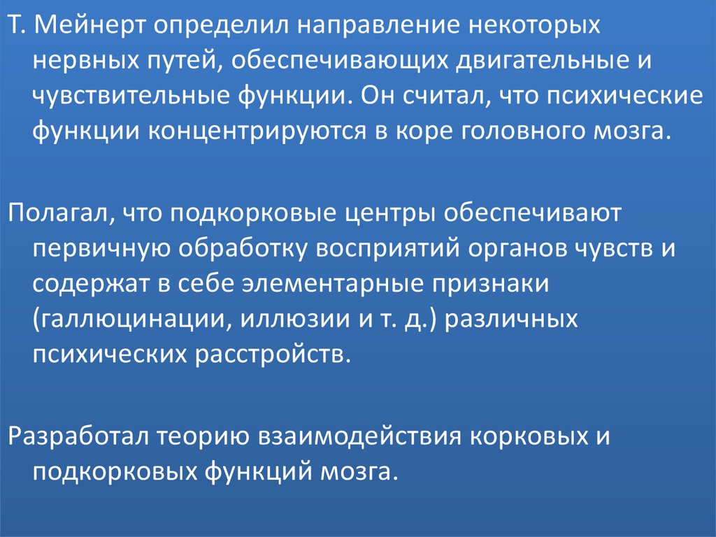 Теодор Герман Мейнерт (1833–1892) — крупныйавстрийский психиатр, невролог, анатом и