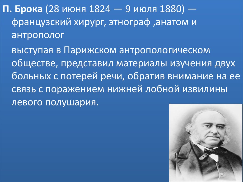 П. Брока (28 июня 1824 — 9 июля 1880) —французский хирург, этнограф ,анатом и