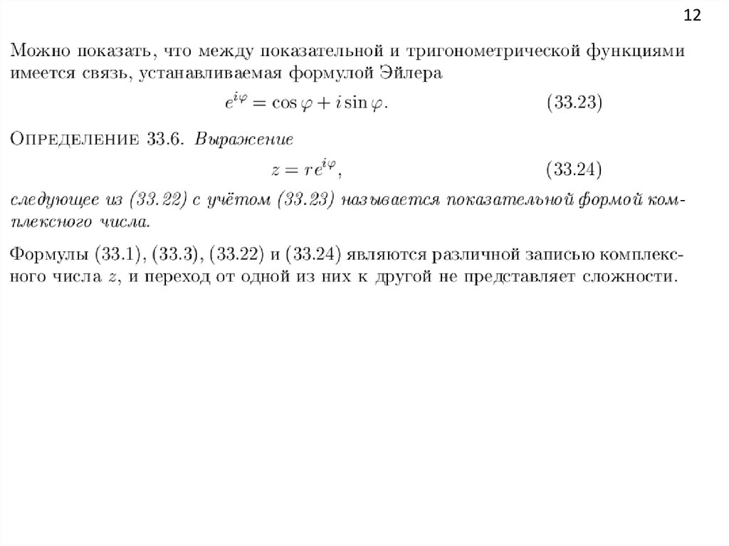 Понятие о комплексных числах. Алгебраическая, тригонометрическая