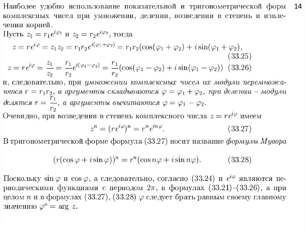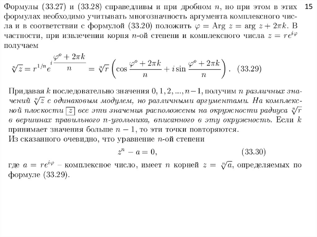 комплексных чисел, извлечение корня из комплексного числа.