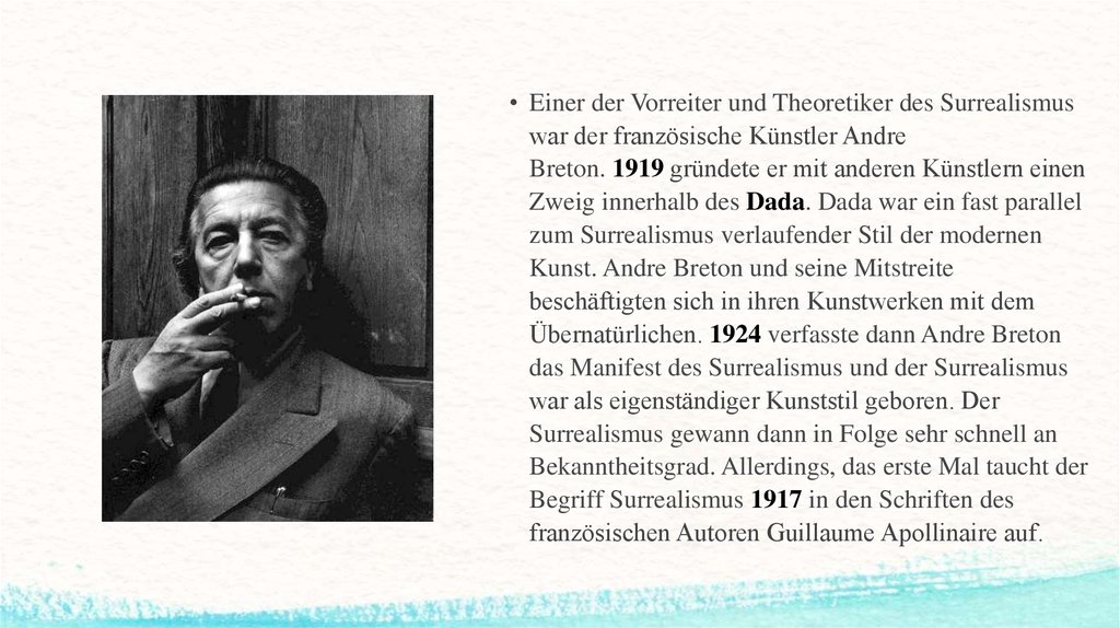 • Einer der Vorreiter und Theoretiker des Surrealismuswar der französische Künstler Andre