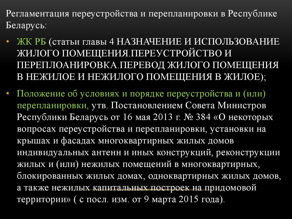 Регламентация переустройства и перепланировки в РеспубликеБеларусь: