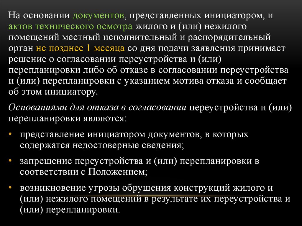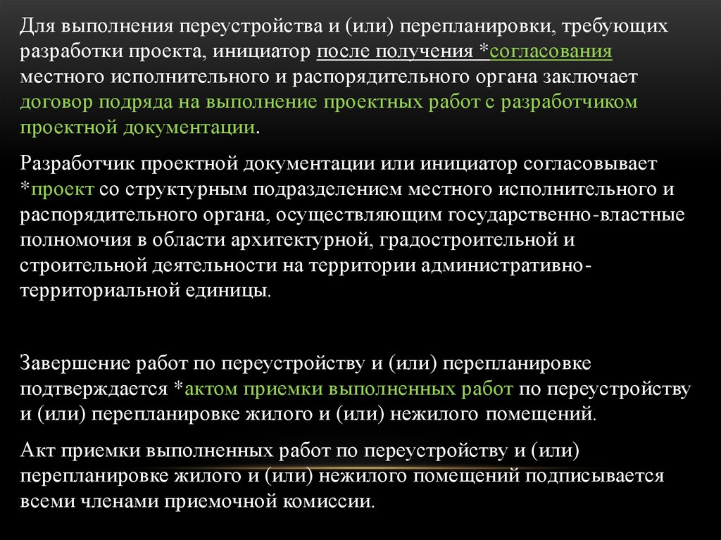 ОБЩИЕ ПОЛОЖЕНИЯСогласно Положению об условиях и порядке переустройства и (или)