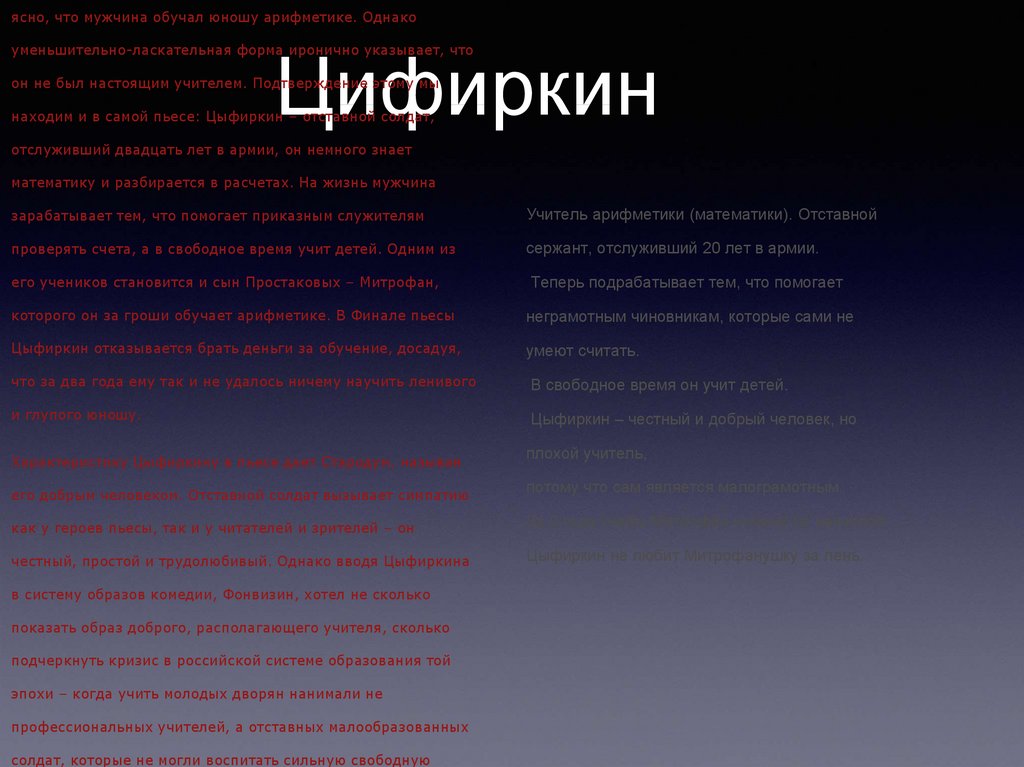 честный, простой и трудолюбивый. Однако вводя Цыфиркина