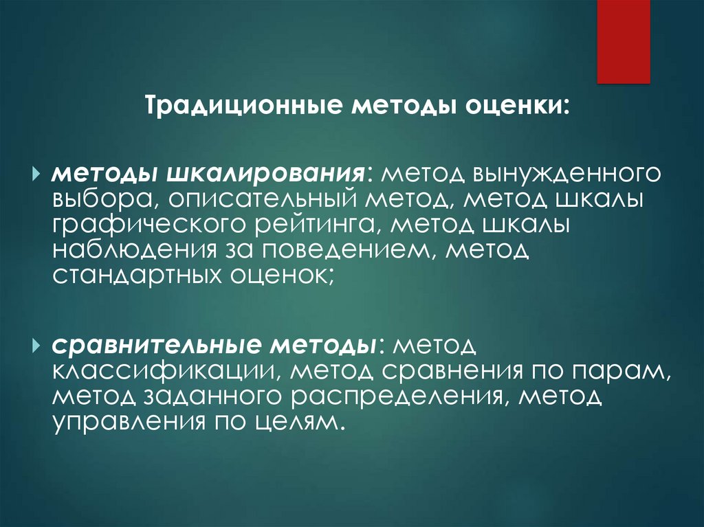 Традиционные методы оценки:методы шкалирования: метод вынужденного