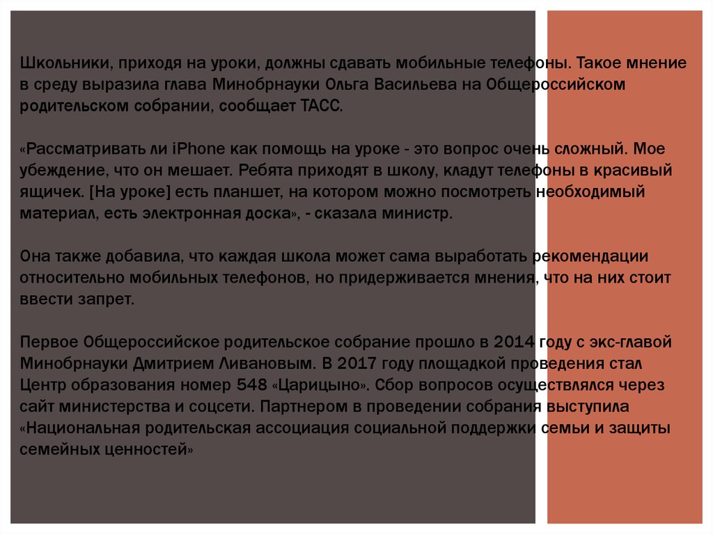 ВАСИЛЬЕВА: ДЕТИ ДОЛЖНЫСДАВАТЬ ТЕЛЕФОНЫ ПЕРЕД
