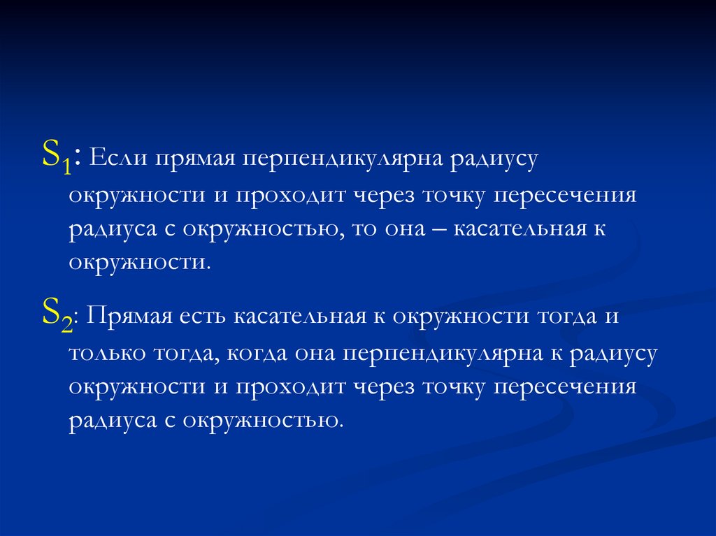 S1: Если прямая перпендикулярна радиусуокружности и проходит через точку пересечения