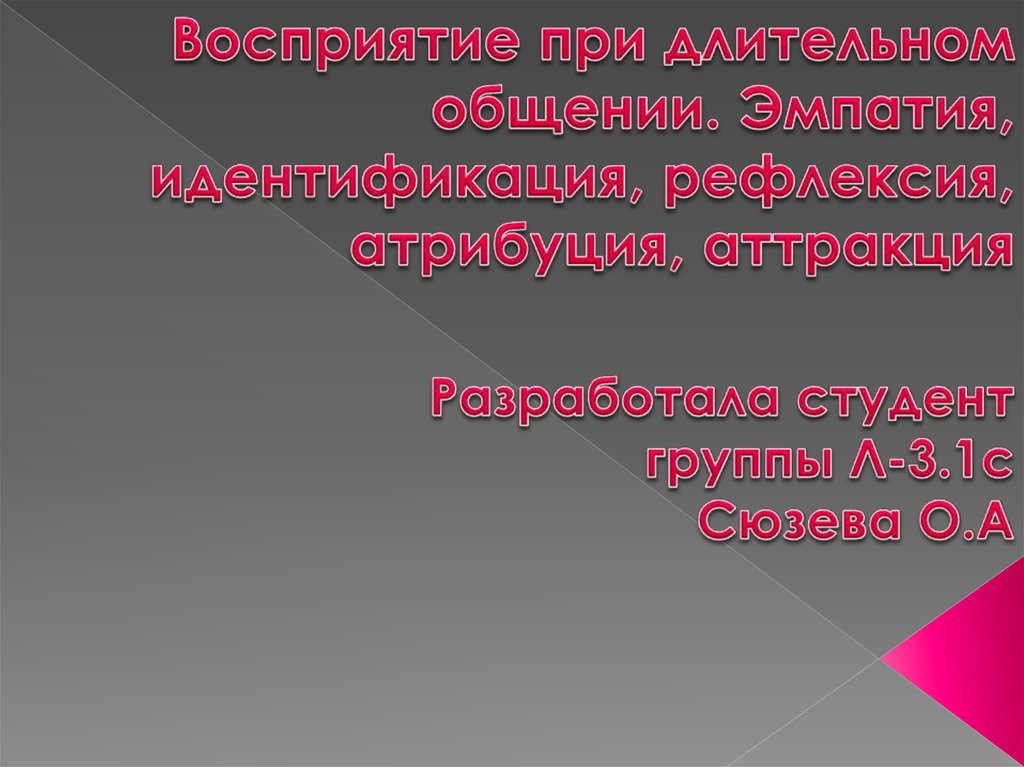 Восприятие при длительном общении. Эмпатия, идентификация, рефлексия, атрибуция, аттракция