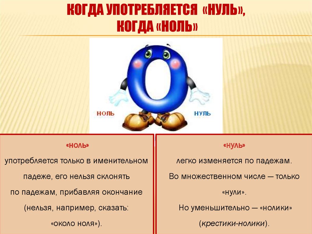 КОГДА УПОТРЕБЛЯЕТСЯ «НУЛЬ»,КОГДА «НОЛЬ»