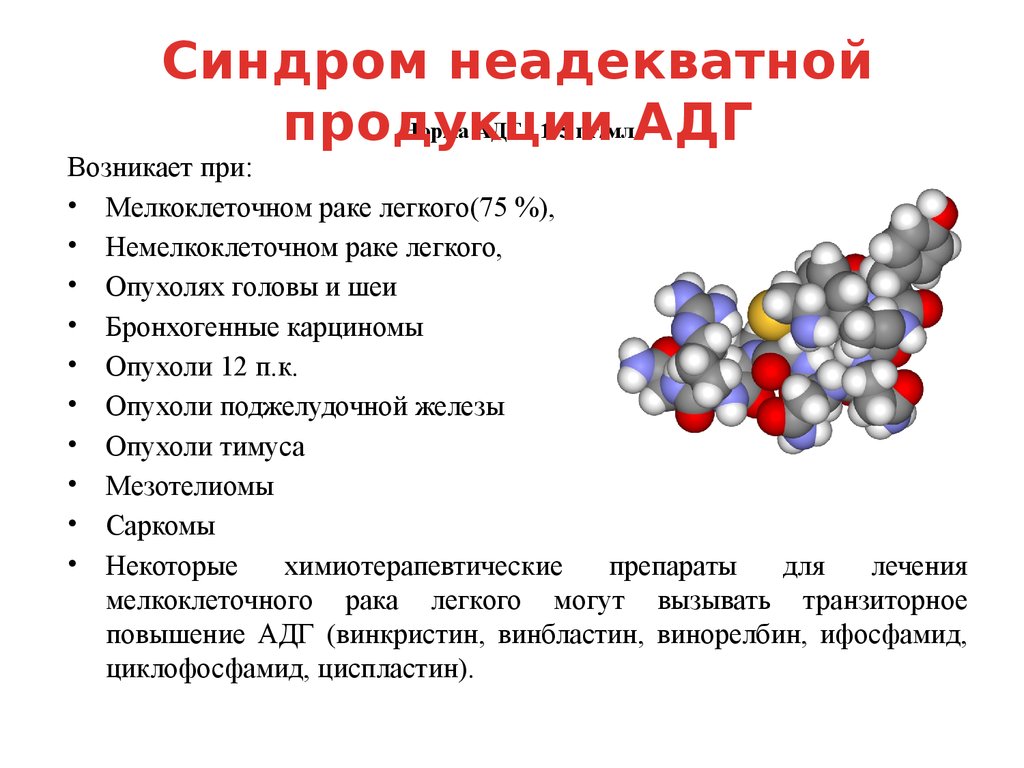 повышение АДГ (винкристин, винбластин, винорелбин, ифосфамид,