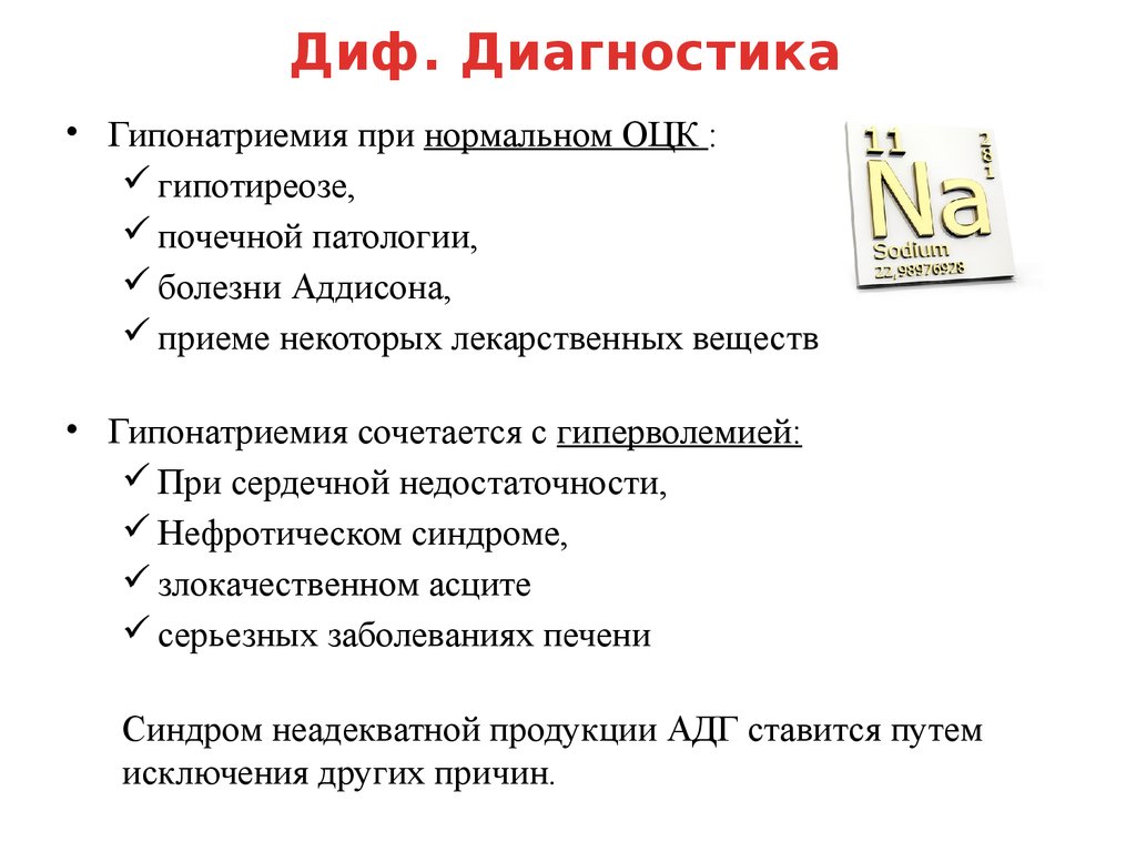 Диф. Диагностика• Гипонатриемия при нормальном ОЦК :
