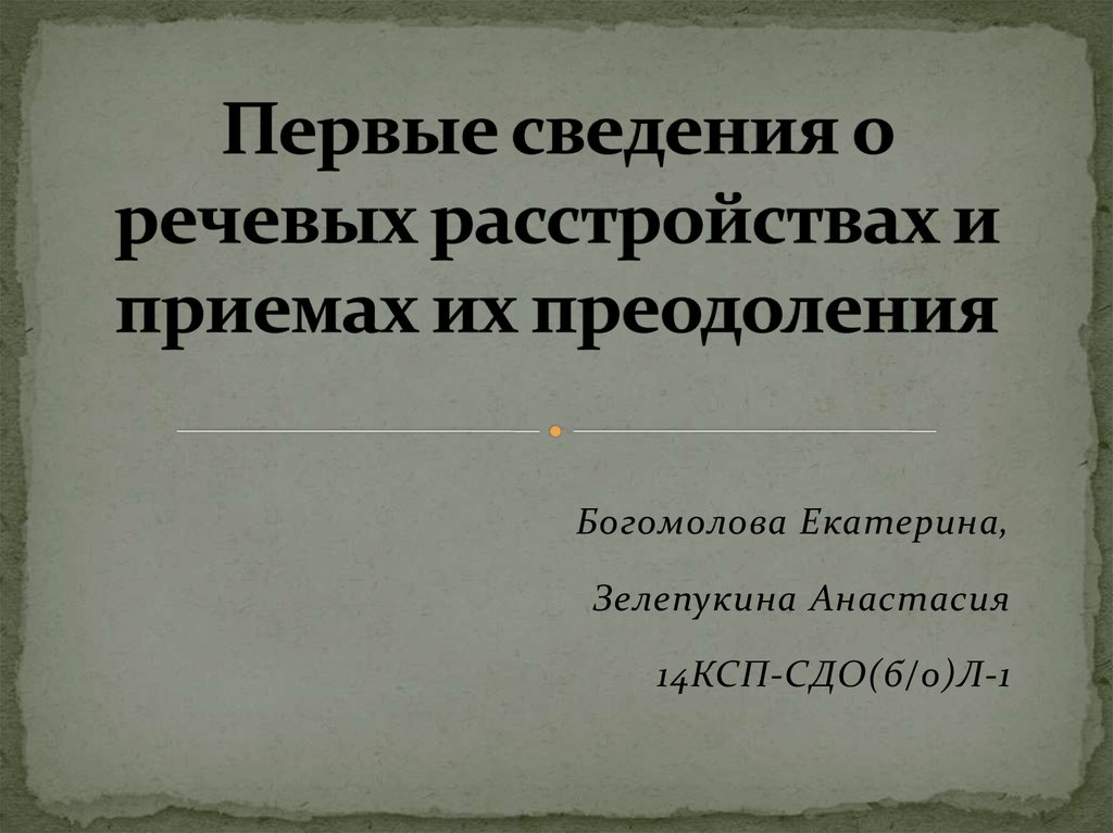 1. Первые сведения о речевых расстройствах и приемах их преодоления