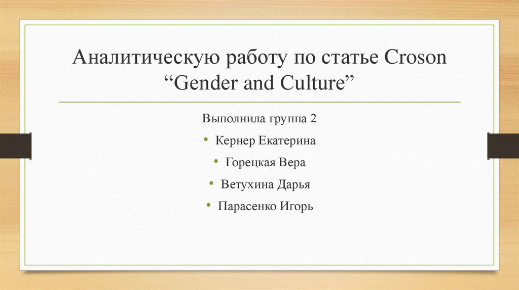 1. Аналитическую работу по статье Croson “Gender and Culture”