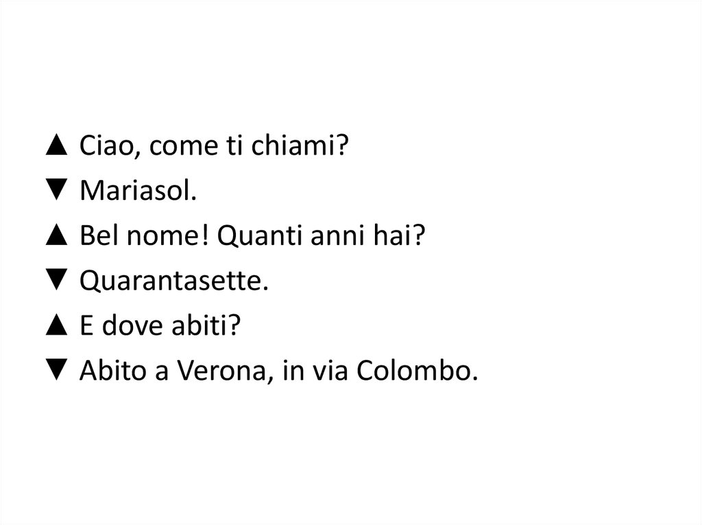 ▲ Qual è il suo nome?▼ Il mio nome è Mariasol.