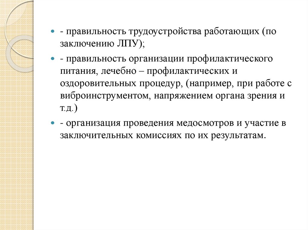 - правильность трудоустройства работающих (позаключению ЛПУ);