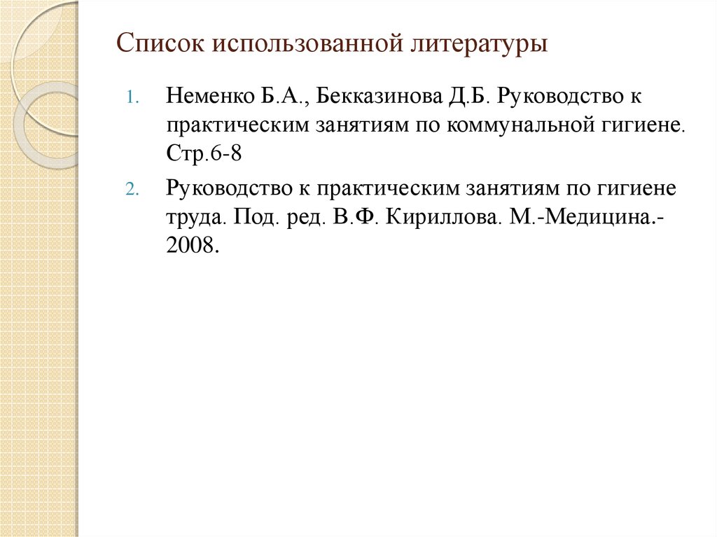 практическим занятиям по коммунальной гигиене.