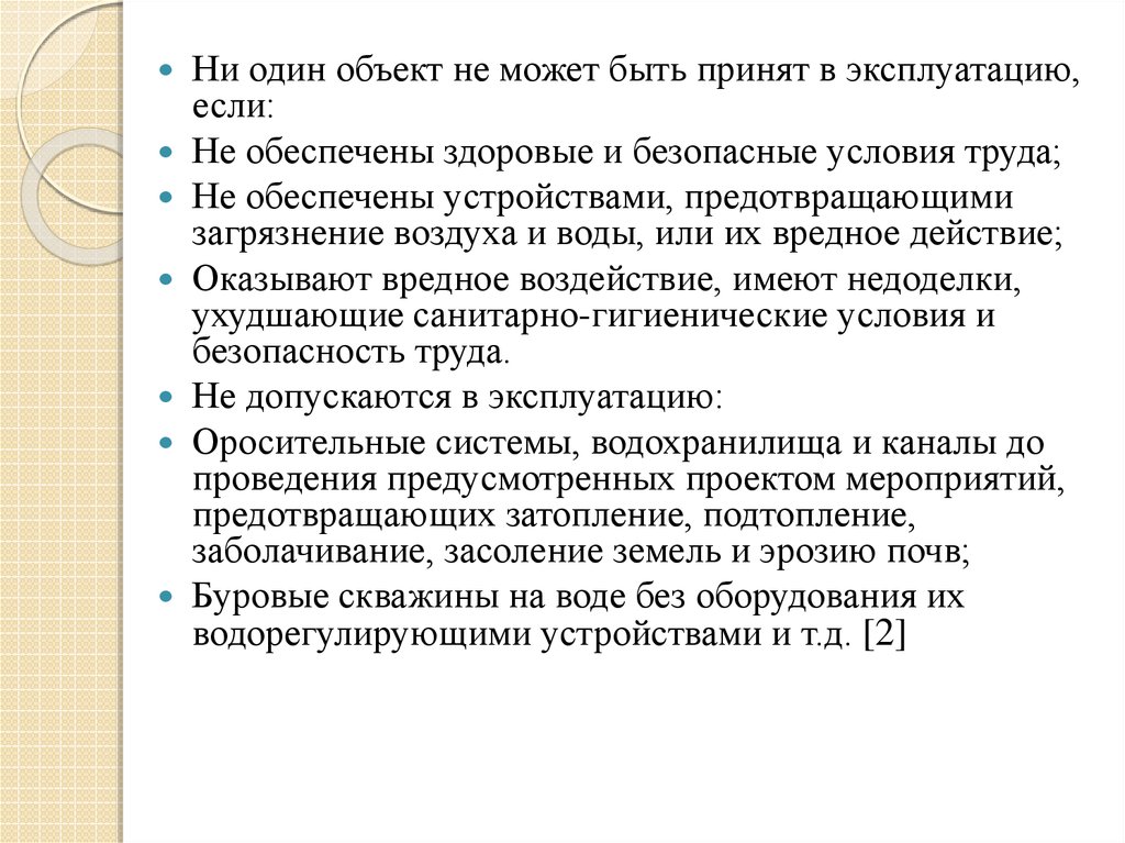 Ни один объект не может быть принят в эксплуатацию,если: