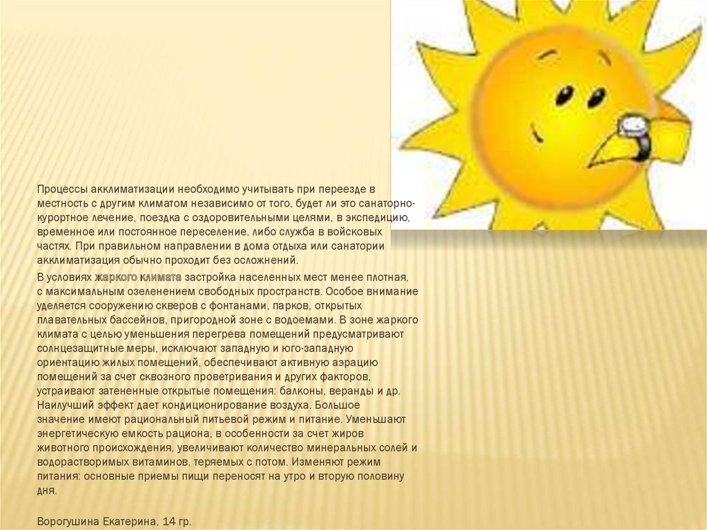 Процессы акклиматизации необходимо учитывать при переезде вместность с другим климатом независимо от того, будет ли это санаторнокурортное лечение, поездка с оздоровительными целями, в экспедицию,