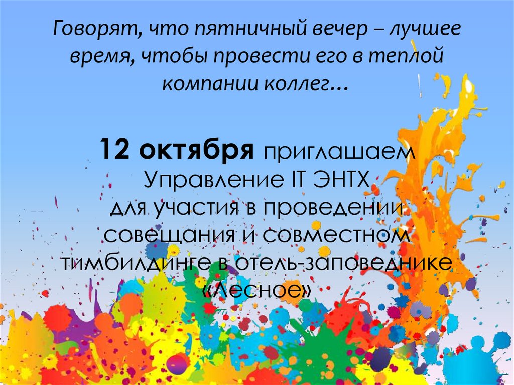 12 октября приглашаем управление IT ЭНТХ для участия в проведении совещания и совместном тимбилдинге