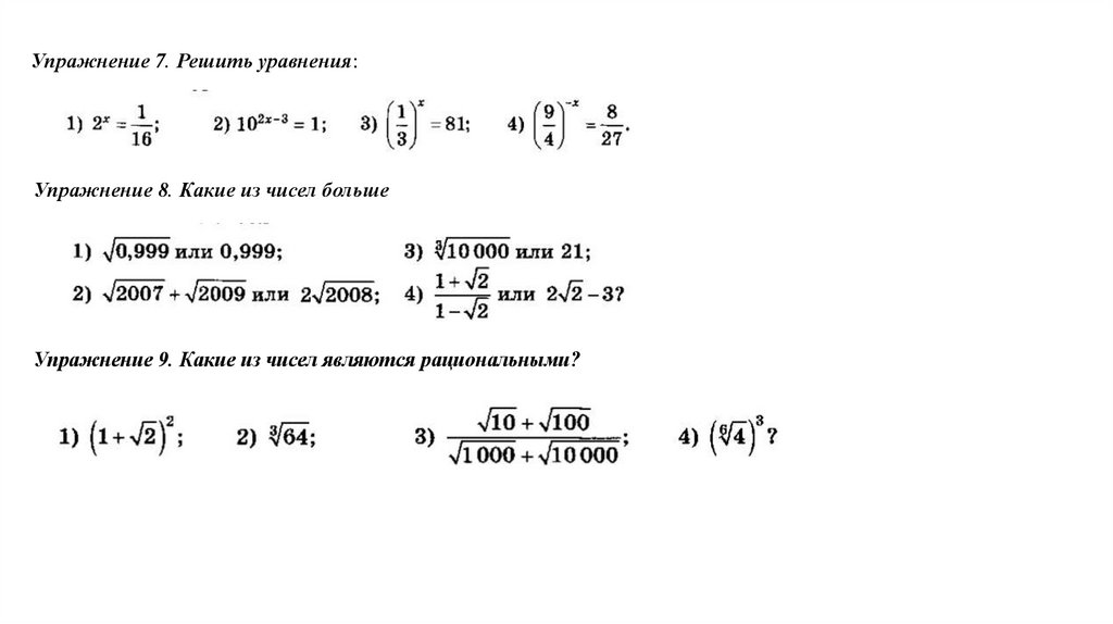 Упражнение 9. Какие из чисел являются рациональными?