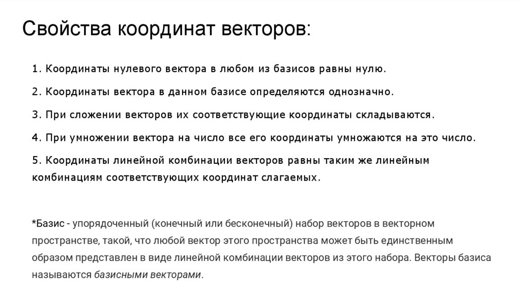 Что такое координаты вектора?Координа́ты ве́ктора ― коэффициенты единственно