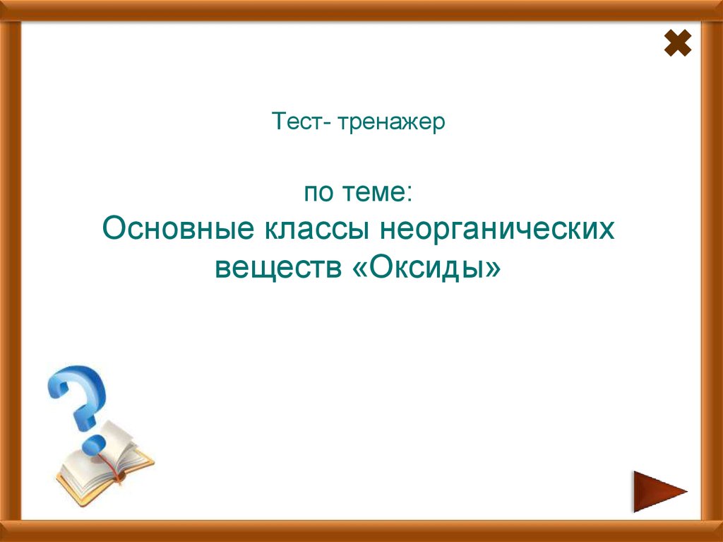 1. Тест- тренажер по теме: Основные классы неорганических веществ «Оксиды»