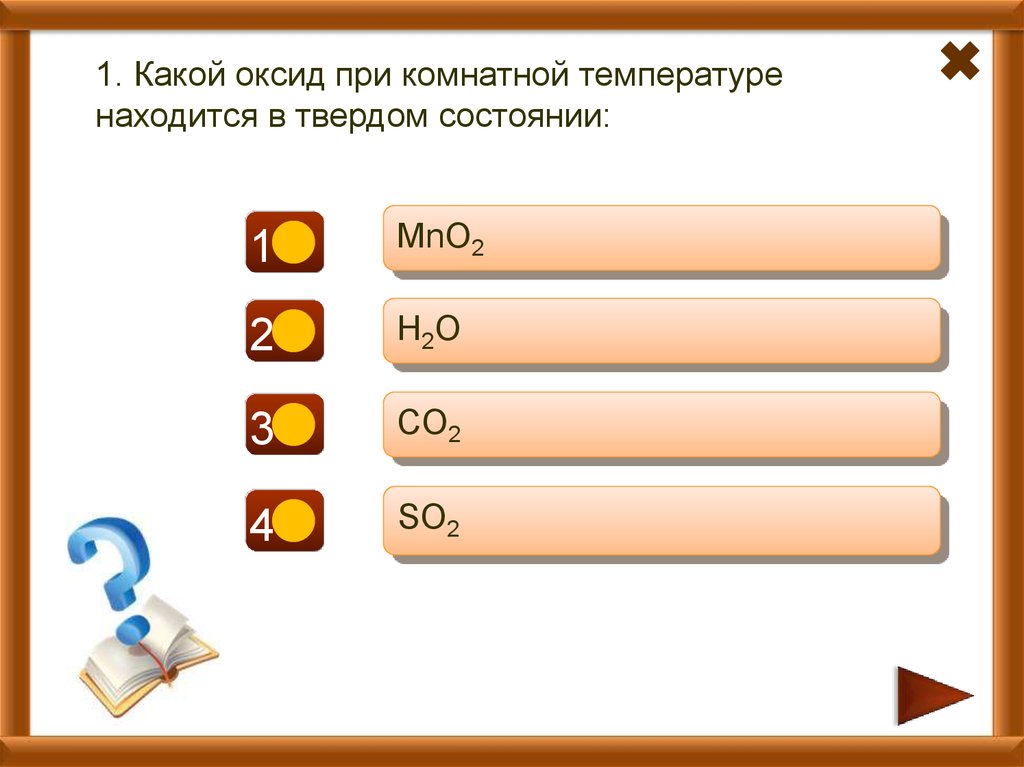 1. Какой оксид при комнатной температуренаходится в твердом состоянии: