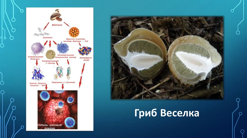ГРИБ ВЕСЕЛКА:вызывает выработку организмом человека перфорина, который не дает