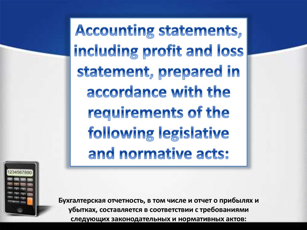Бухгалтерская отчетность, в том числе и отчет о прибылях иубытках, составляется в соответствии с требованиями