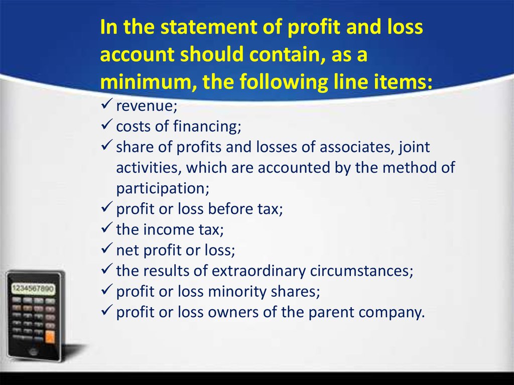 В отчете о прибылях и убыткахдолжны содержаться, как минимум,