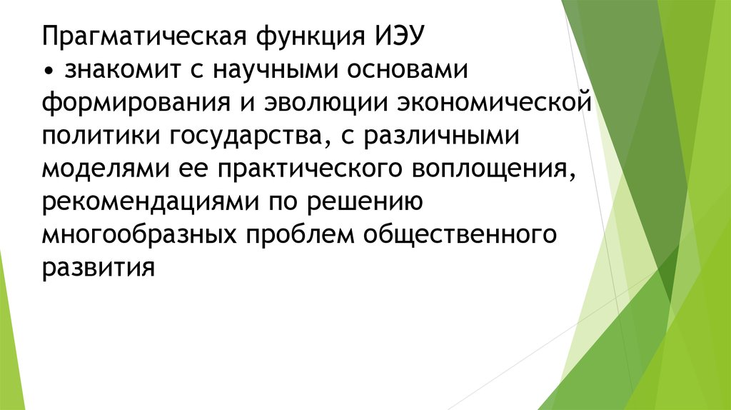 Прагматическая функция ИЭУ• знакомит с научными основами