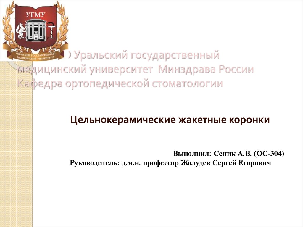 1. ГБОУ ВПО Уральский государственный медицинский университет Минздрава России Кафедра ортопедической стоматологии