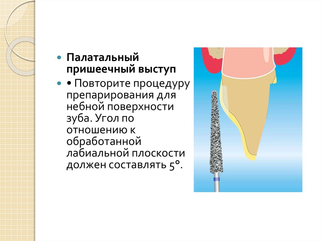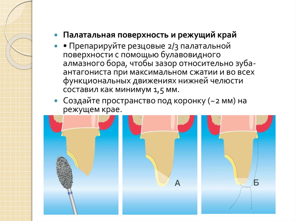 Палатальная поверхность и режущий край• Препарируйте резцовые 2/3 палатальной